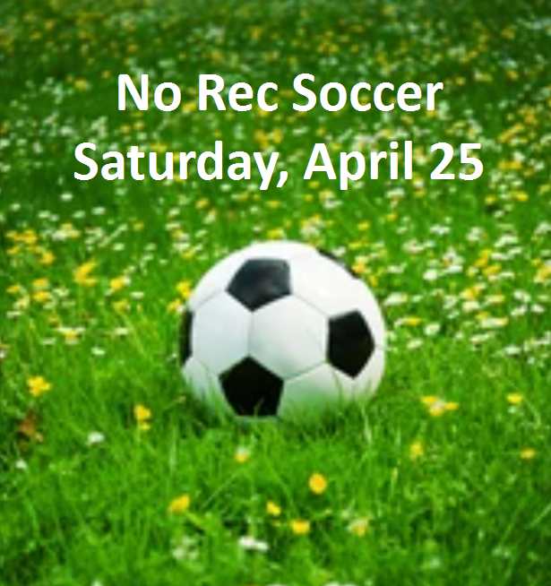 There are no Rec Soccer games scheduled for Saturday, 4/25/2026 due to April Vacation.